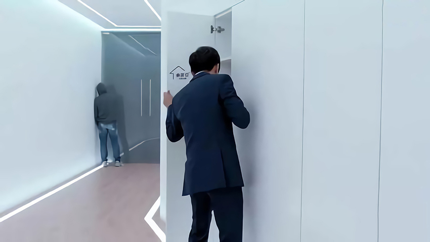 劇中程浩經(jīng)常瀟灑的按一下遙控器,然后整個(gè)透明的玻璃就變成了純白色,原本透光的玻璃瞬間就像拉上了窗簾一樣。