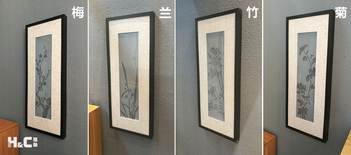 調光膜電子畫,另類墻壁掛畫展示梅、蘭、竹、菊的清雅淡泊