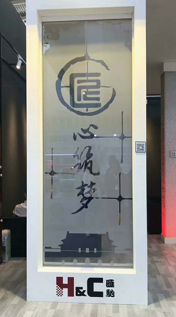 我司此次展示的分區(qū)調(diào)光玻璃有3大片,其中最吸引觀眾的就是這片玻璃。“匠心筑夢”4個字,反映了當今企業(yè)發(fā)展所需的專注、求精和堅持的工匠精神,也表明了我公司對產(chǎn)品的態(tài)度。而天安門廣場的圖形,則表示我們這次展會的地點是北京。