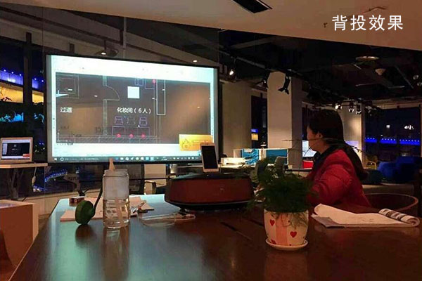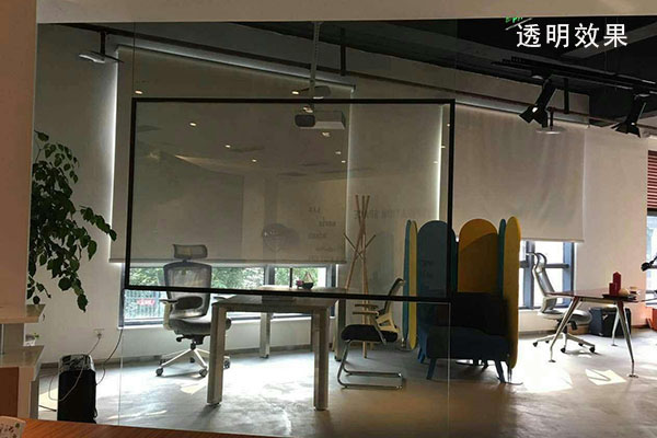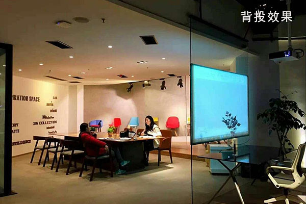 調(diào)光玻璃(霧化玻璃)在不透明時(shí),可以當(dāng)作投影硬屏使用。在光線適宜的環(huán)境下,利用高清投影機(jī)將圖像背投到調(diào)光玻璃上,成像效果出眾。結(jié)合觸控設(shè)備即可組建成大型“平板電腦”。通過(guò)手指點(diǎn)觸操作,滿足會(huì)議投影及櫥窗對(duì)外投放廣告的需要。